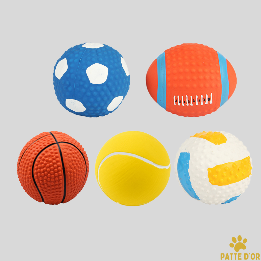 Nos balles sont fabriquées en latex naturel non-toxique. Cependant, comme pour tout jouet, nous recommandons de surveiller les sessions de jeu et de retirer le produit si des morceaux venaient à être arrachés.